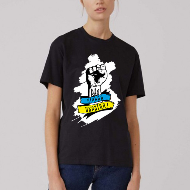 Патріотична футболка Вільна Україна виконана з якісного матеріалу (100% бавовна) та має щільність 190 г/м.
