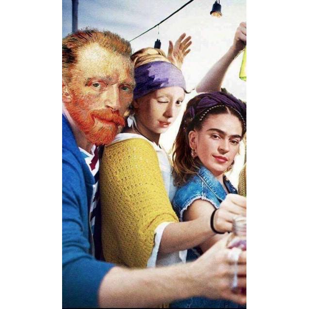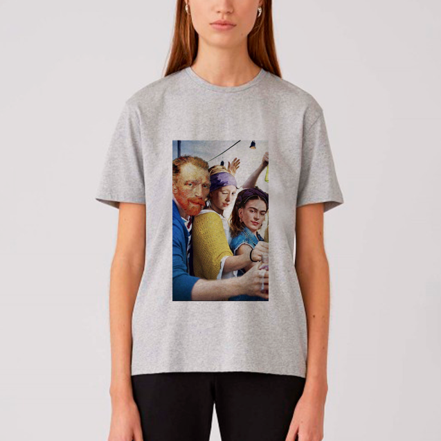Ван Гог, Фріда Кало і Дівчина з перловою сережкою - три відомих в мистецтві персонажа зібралися на одній футболці.